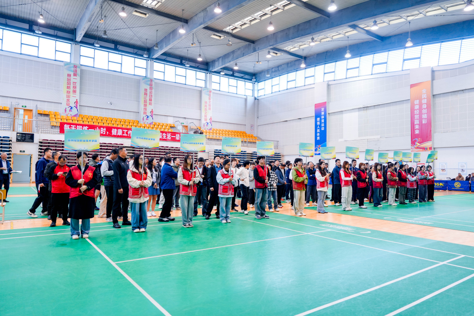 11月7日,由苏州市教育工会主办,苏州经贸职业技术学院承办的2025年在苏高校第十一届教职工羽毛球团体赛在该校体艺中心拉开了帷幕。苏州市教育局三级调研员、市教育工会主席汪涛,苏州市教育局四级调研员、统战与群工处处长、市教育工会常务副主席江莉,苏州市教育工会兼职副主席、高校片片长吴惠芳参加了开幕式。在苏高校的15支代表队近200名教职工齐聚赛场,以球会友。我校代表队不畏强手、顽强拼搏、胜不骄、败不馁,最终取得参赛以来最好成绩。